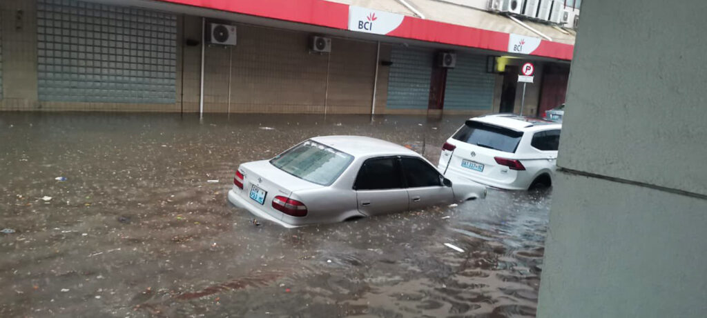Algumas avenidas do centro da Cidade de Maputo ficaram parcialmente inundadas após a queda de chuvas fortes, registadas na tarde desta quarta-feira.
