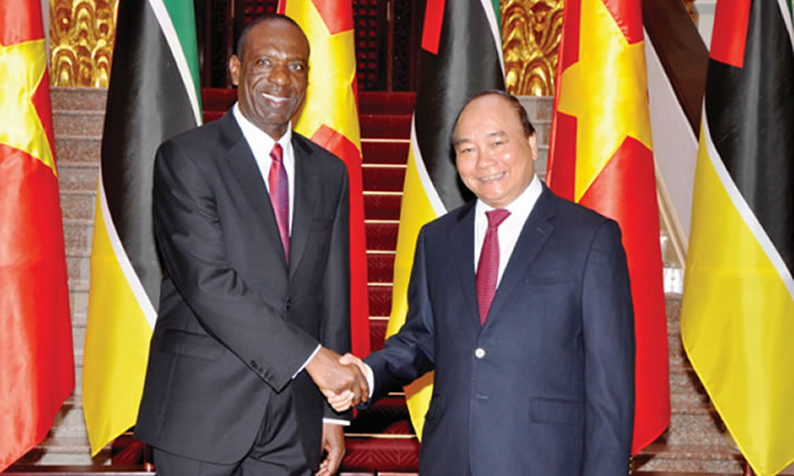 O primeiro-ministro moçambicano convidou, ontem, os empresários do Vietname a investirem em Moçambique. Usou a empresa Movitel como exemplo do investimento vietnamita em Moçambique e diz que os homens de negócios daquele país devem seguir o exemplo. “Dissemos que vamos acarinhar as actividades da Movitel, para que outros investimentos vietnamitas ocorram em outras áreas de desenvolvimento. Apelamos ao povo e empresariado do Vietname para seguirem o exemplo da Viettel, investindo em Moçambique, país que goza de um clima de paz e possui recursos naturais e humanos à altura de viabilizar os investimentos”, sublinhou Carlos do Rosário. Por sua vez, o primeiro-ministro vietnamita, Nguyen Xuan Phuc, congratulou os esforços empreendidos pelo Governo na dinamização do crescimento económico de Moçambique.