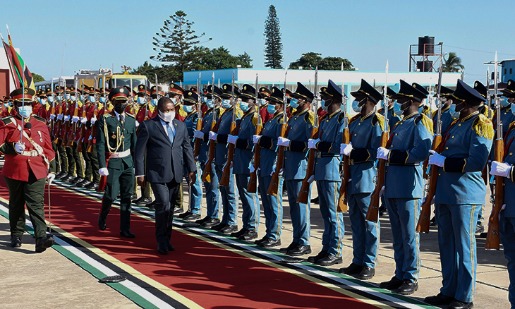 Na manhã desta quarta-feira, Filipe Nyusi esteve no Aeroporto Internacional de Maputo, donde partiu para Guine Equatorial, mas, antes, assistiu a uma guarda de honra.