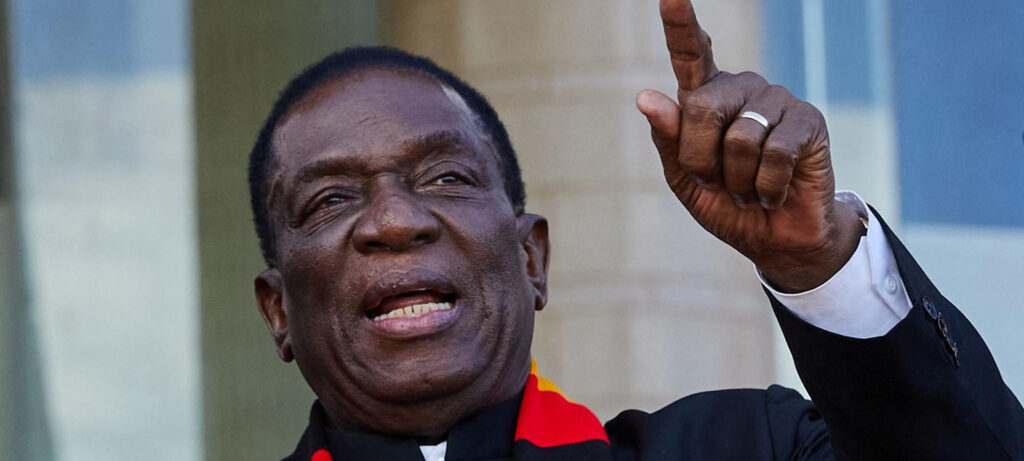 Emmerson Mnangagwa tornou-se presidente em 2017, após um golpe contra o líder de longa data Robert Mugabe, e actualmente está a cumprir seu segundo e último mandato, que expira em 2028.