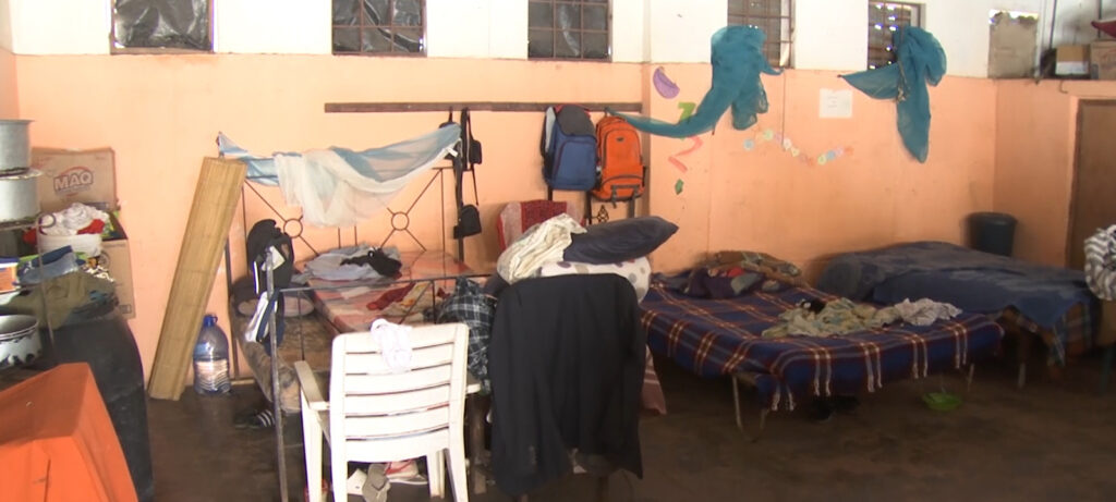Numa escolinha, 18 famílias improvisam quartos. São mais de 33 famílias residentes na zona baixa do bairro Hulene B, que não têm como voltar às suas casas, porque ainda estão inundadas.