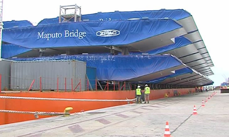 Eram cerca das 13h30 quando o navio que traz os 57 módulos do tabuleiro da ponte chegou ao porto de Maputo, confirmando uma das etapas mais importantes para a execução desta obra pública, que está entre as maiores a serem erguidas no país. Silva Magaia, presidente do Conselho de Administração da empresa Maputo Sul, empresa a frente da construção da ponte Maputo-Katembe, descreve a chegada do tabuleiro como a etapa principal, já que a estrutura começará a ganhar forma dentro de dias, devendo a montagem durar um mês.
