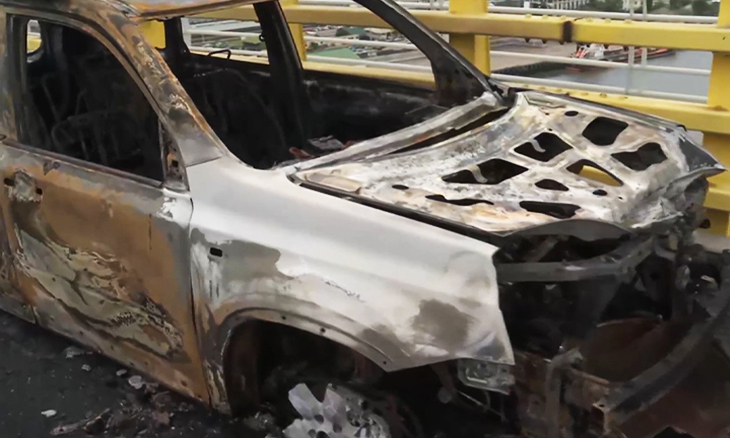 Um carro incendiou-se no vão suspenso da ponte Maputo-Katembe. O facto ocorreu por volta das 10:40 e presume-se um curto-circuito como causa do sucedido.